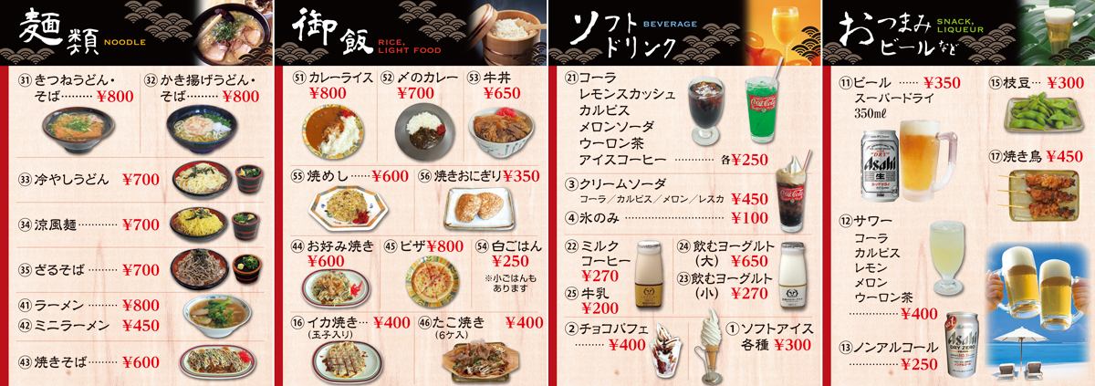その隣ではうどんやドリンクなど軽食もご用意しております。